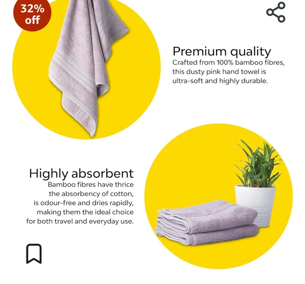 Highly absorbent: Bamboo fibres have thrice the absorbency of cotton, remain odour-free and drying rapidly; ideal for for travel and daily use.