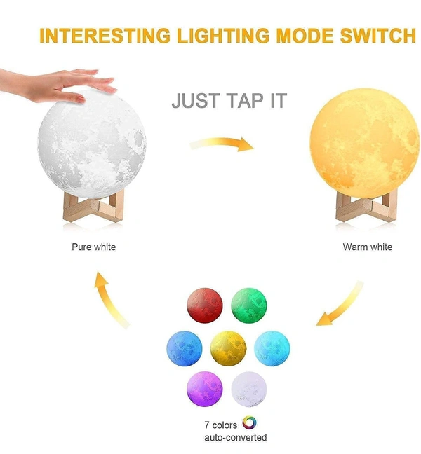 3D Moon Lamp 7 Colour 15 cm Changeable Sensor Moon Night Lamp for Bedroom, Touch Lamp, Moonlight Lamp with Stand & USB for Bedside, Valentine Gifts, Festival Gifts, Corporate Gifts, Wedding Gifts