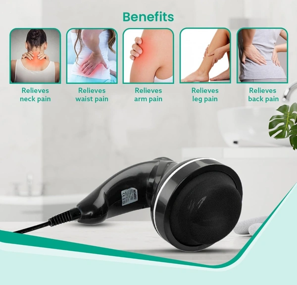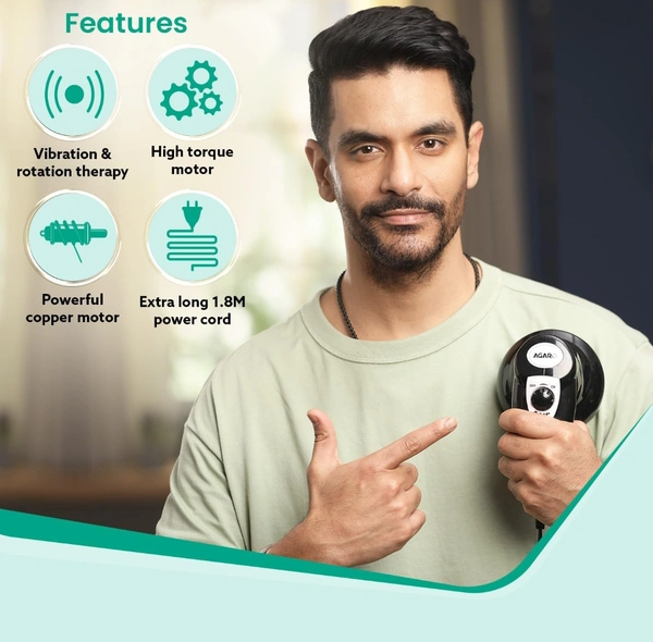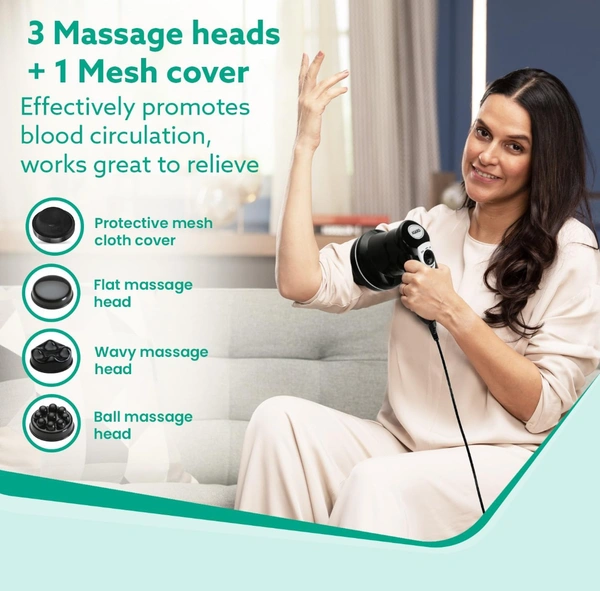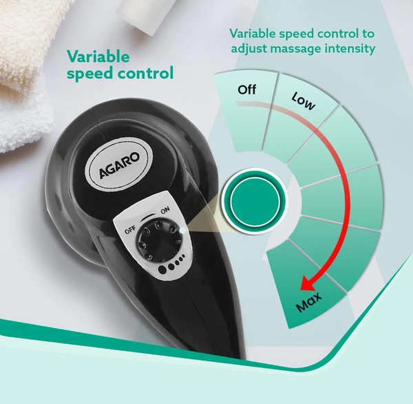 AGARO Atom Electric Handheld Full Body Massager with 3 Massage Heads & Variable Speed Settings for Pain Relief and Relaxation, Back, Leg & Foot, Black