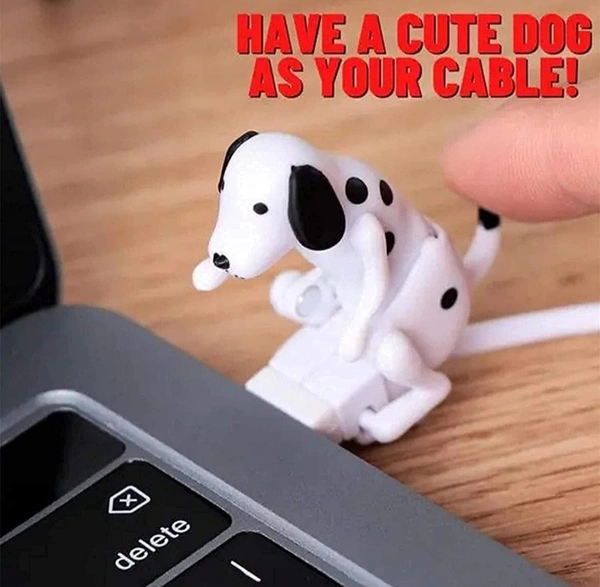 - šćCute USB Creativity Small Puppy Data CablećHumanized reminder to charge Creative design, will automatically swing hips when charging and will stop by itself when fully charged, Add a little laughter to your boring office life.