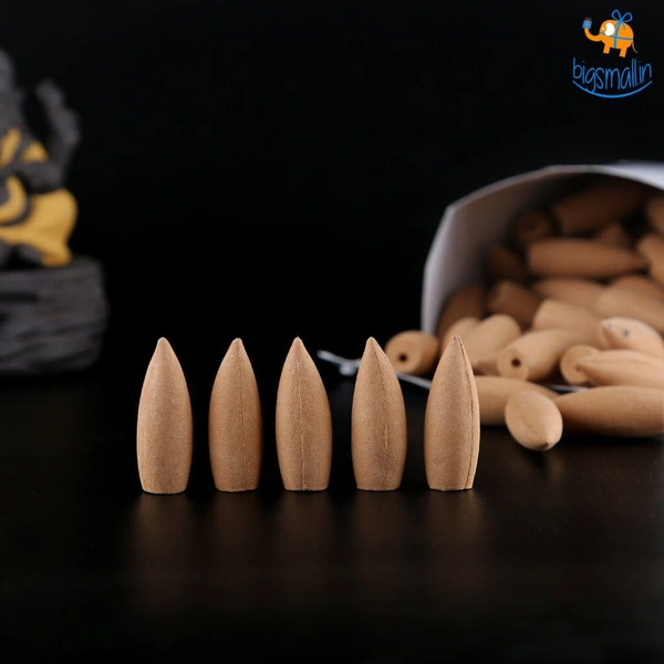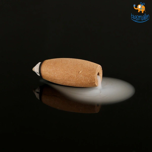 These backflow incense cones when lit produce the smoke in reverse direction, i.e. top to bottom creating a beautiful waterfall smoke effect when combined with the right figurine. Each cone is dry and has a hole at the bottom, which acts as an outlet for the smoke.