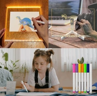 BAREPEPE 3D Acrylic Writing Board with Pens Glowing Led Message Board Rewritable Light Noteboard with Adjustable Stand PCENF5294 and 14 Pens - 30x20 cm