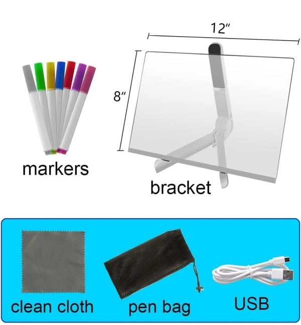 (Quick-drying writing pen): Acrylic Writing Board with Light Comes with a pen and a rag, you can write easily, quickly and smoothly on the board.It dries quickly,and is easy to wipe off.You can wipe it with the supplied rag or cloth or paper towel.It can be used repeatedly.It is a practical life expert