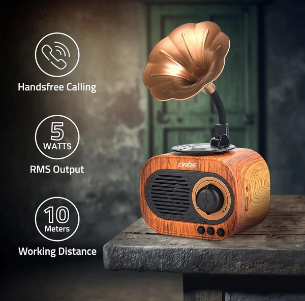 PREPAID Artis BT12 Classic Retro Wireless BT Speaker with FM/USB/PREPAID Only AUX in & Hands Free Calling (5W RMS Output) PCENF5280