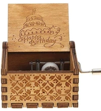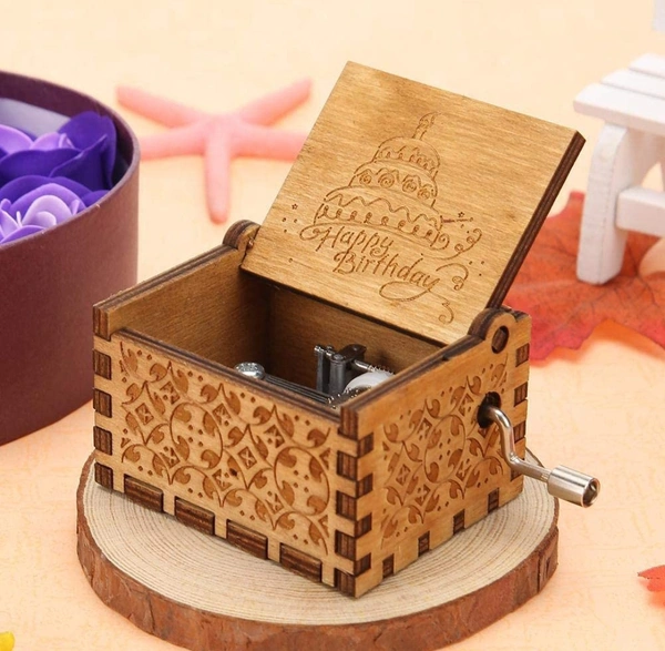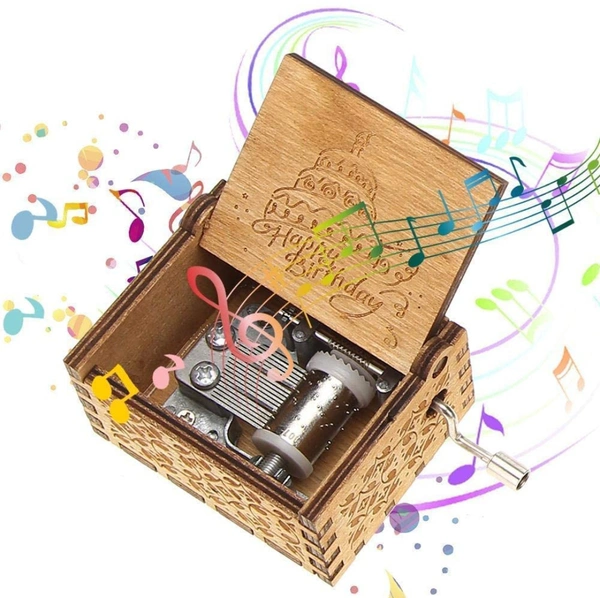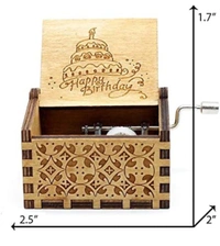 EITHEO Wooden Antique Carved Hand Crank Multicolor Happy Birthday Theme Music Box
