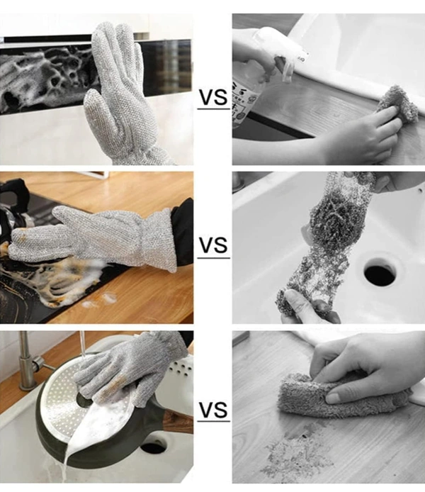 Wire Dishwashing Gloves : Bamboo Fiber Material These household gloves are made from bamboo fiber, with strong adsorption capacity, feel soft and abrasion resistance, have unique characteristics of anti-odor.