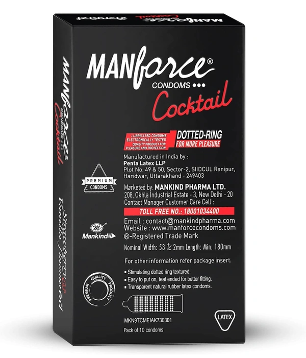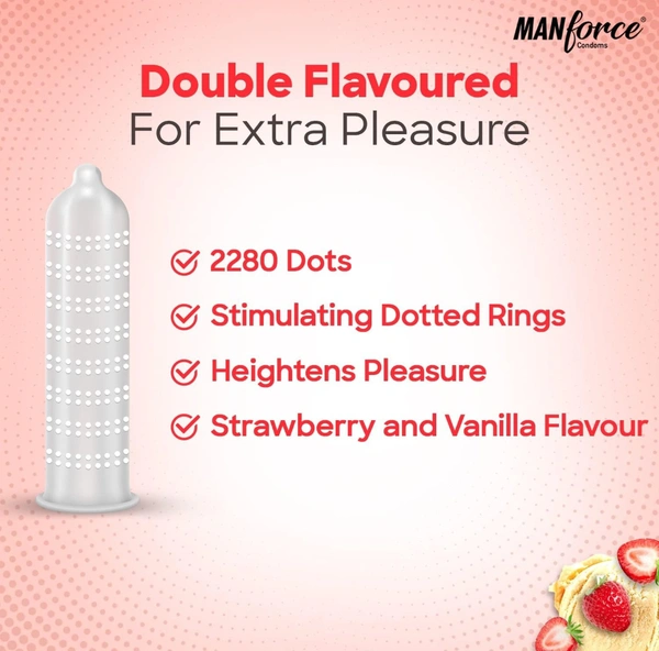 Manforce Cocktail Strawberry & Vanilla Flavoured Condoms for Men with Dotted Rings| Double the Fun with Double Flavour| Extra Dotted for Her Extra Stimulation| India’s No. 1* Condom Brand| Lubricated Latex Condoms| 10 pcs