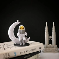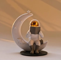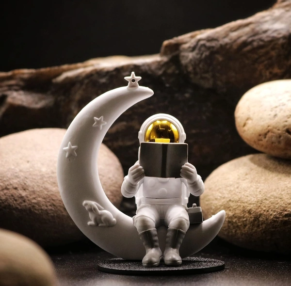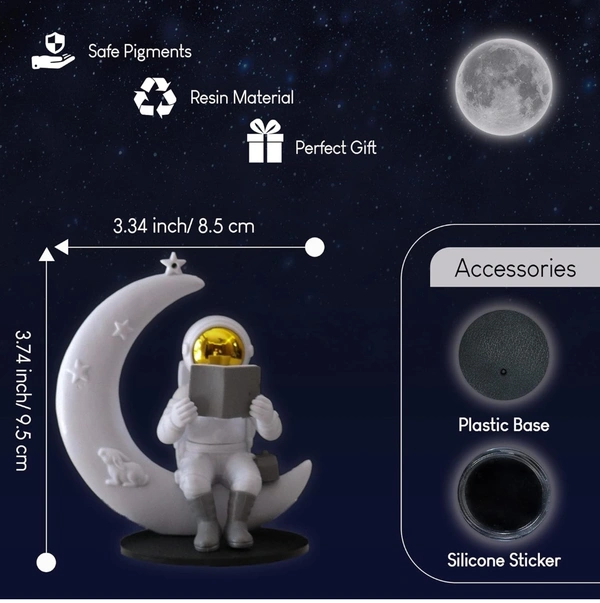 Street27® Astronaut Figurine Showpiece for Home Décor Idols for Office Desk Table Astronaut Toy for Car Dashboard, Statue for Gift Gifting Items Birthday Decoration (Reading on Moon - Golden)