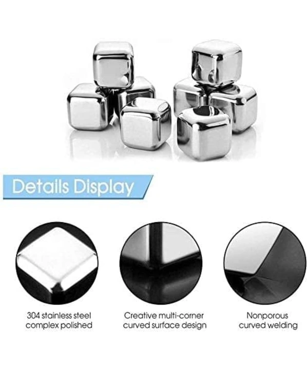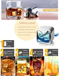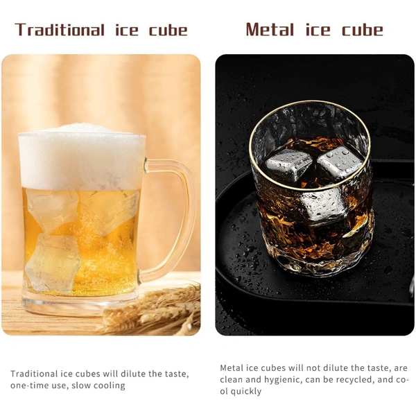 Beverage stones use food grade non-corrosive 304 stainless steel. Durable, reusable, never rusted or corroded, the surface is very smooth and no add any impurities to the drink.