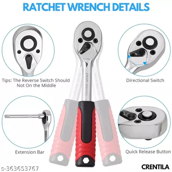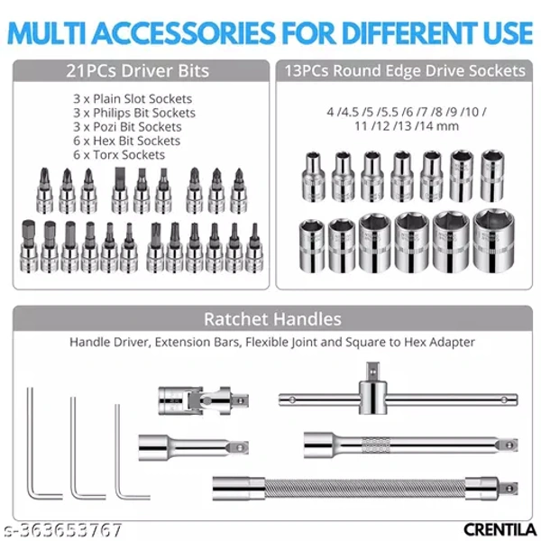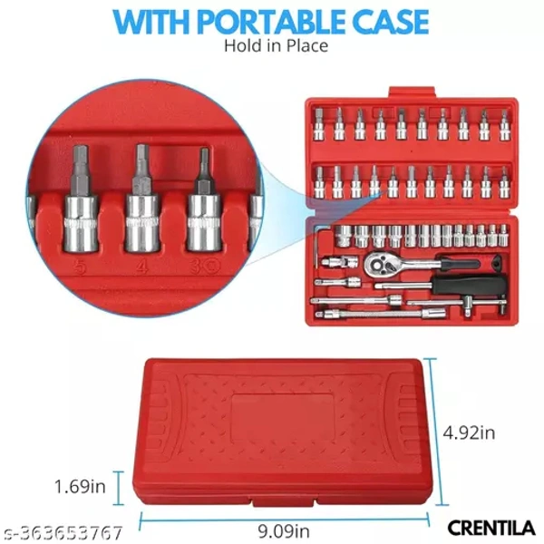 Tool Kit 46 Pieces 1/4 Inch Drive Socket Wrench Set Metallic Mechanical Tools
